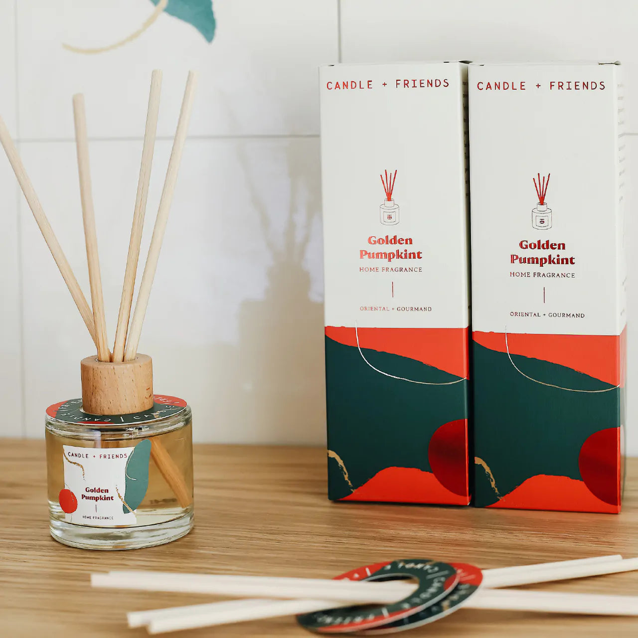 This consists Golden Pumpkint Reed Diffuser, Golden Pumpkint Glass Candle, Golden Pumpkint Giant Matchbox