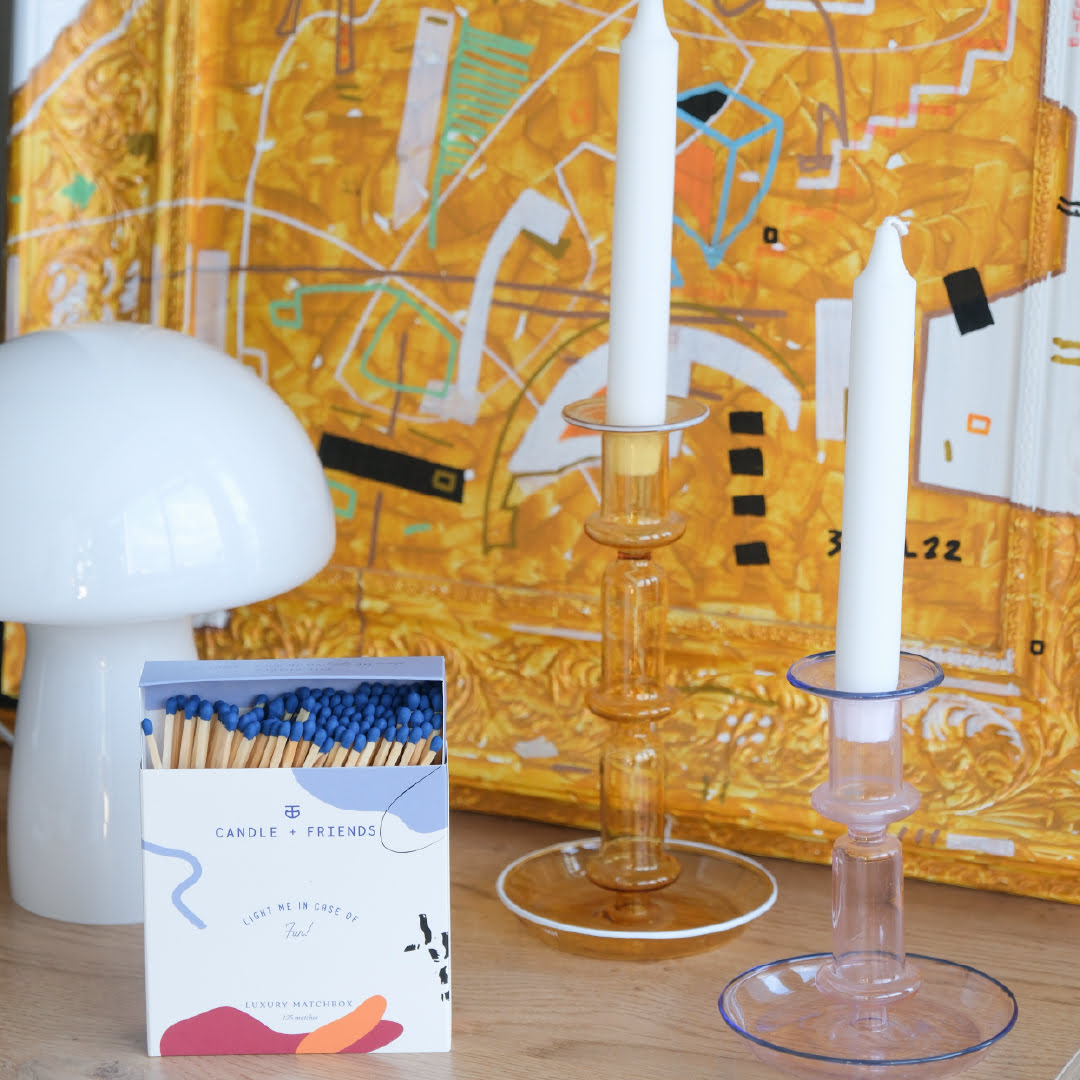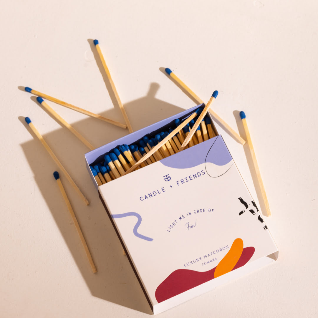 It is the simplest pleasure of lighting your favourite candles. Indian Sandalwood Complementing the design of our Indian Sandalwood candle, this "Light me in case of fun!" matchbox contains approximately 125 matchsticks of 10 cm length. Thanks to these long matches, you can easily light your decreasing candles. Match tip color is blue.