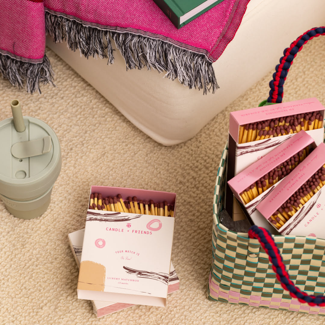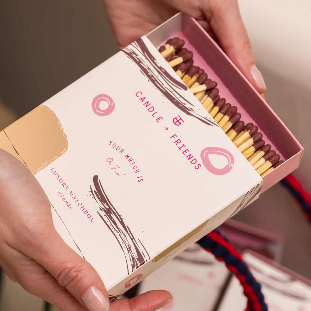 It is the simplest pleasure of lighting your favourite candles. Royal Rose complementing the design of our Royal Rose candle, this "Your Match Is On Fire" matchbox contains approximately 125 matchsticks of 10 cm length. Thanks to these long matches, you can easily light your decreasing candles. Match tip color is burgundy.