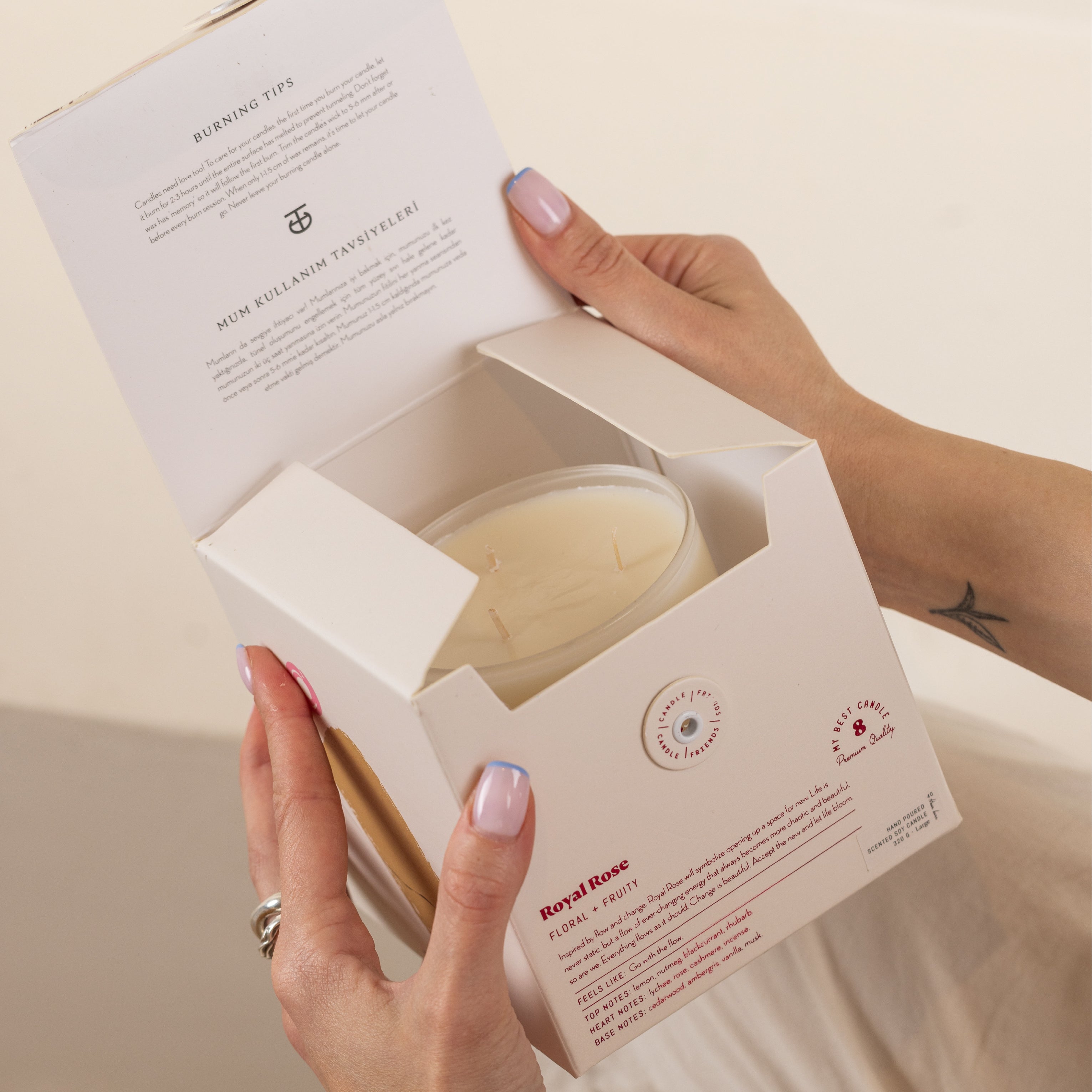 Handmade candles with soy wax, premium fragrance oils and cotton wicks.