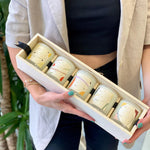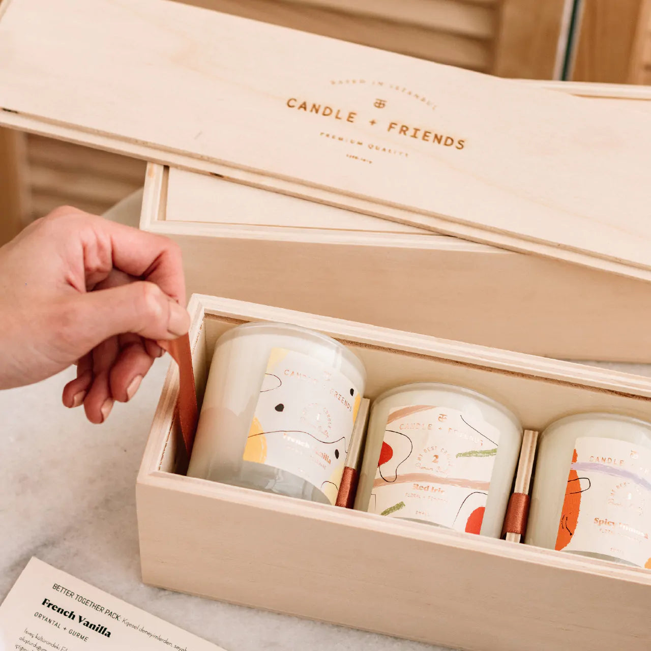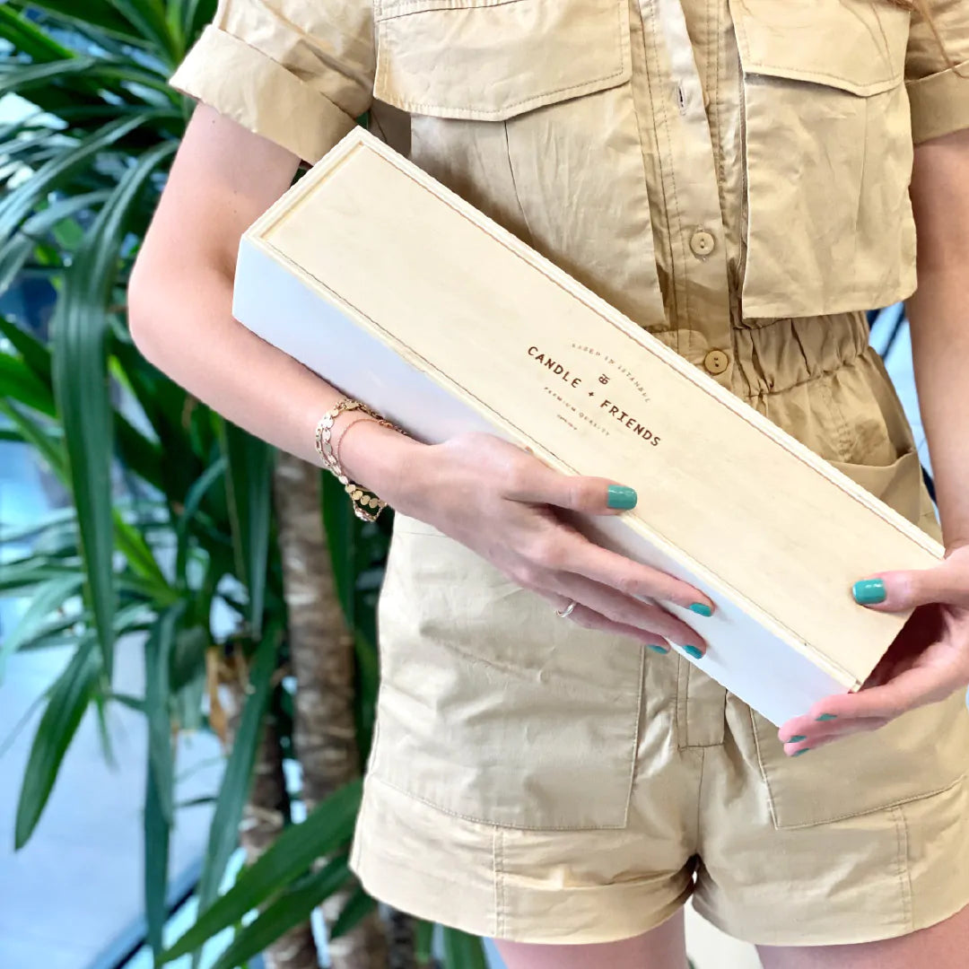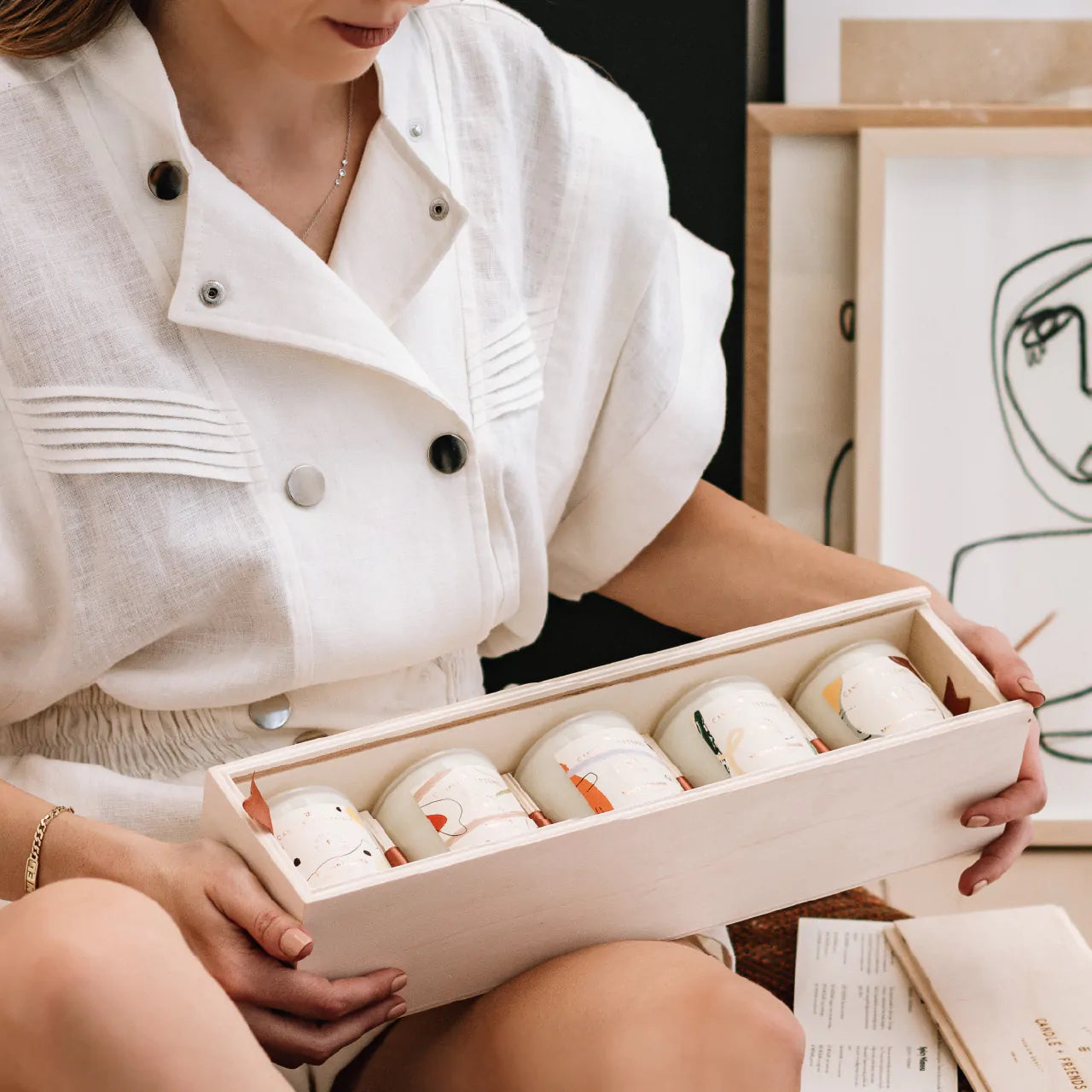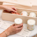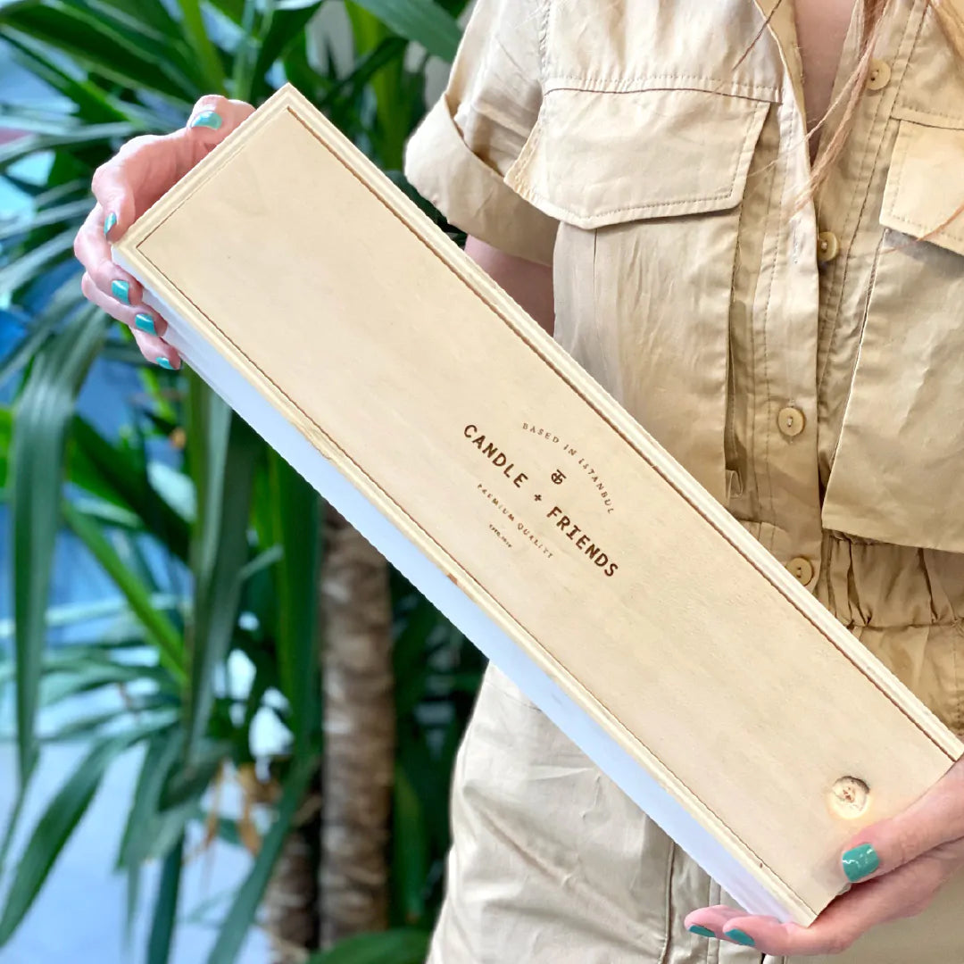 Dreamer koleksiyonumuzdaki beş mumun small boyundan oluşan ahşap hediye seti koleksiyondaki bütün çeşitleri deneyimleyebilmenizi sağlayacak. Her bir mum 165 gramdan oluşmaktadır. Kutu içerisinde bulunan kurdele, mumlarınızı rahatça çıkarabilmeniz için eklenmiştir.