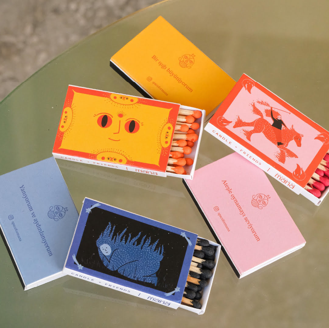 Candle and Friends ve Space For Mana'nın iş birliği ile tasarlanan bu baby kibritler, ateşle oynamayı sevenler ve ışık büyütenler ve o ışığın altında yanan ve aydınlananlar için özenle tasarlandı!